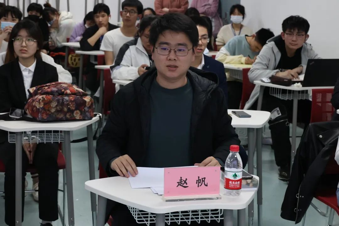 在主持人宣读完比赛流程与规则后,比赛正式开始,六名选手依次上台展示,分别从当前专业学习和职业之间的关系、职业探索、自我探索、职业定位和行动计划等方面进行PPT的展示与自我陈述。选手们在个人陈述过程中对于自身能力的认识、对于未来的规划能力得到了充分展现,体现出了高工学子的自信和生涯规划能力。在每位选手展示完毕后,由评委提问与打分,并对选手的表现进行点评与建议。
