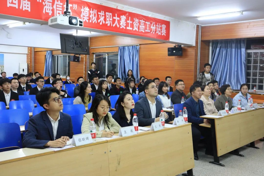 本次活动邀请到了中国矿产资源集团人才发展经理韩冲,金诚信矿业管理股份有限公司人力资源管理中心经理王歆,北京城建集团国际事业部招聘经理袁媛,中铁北京工程局集团有限公司招聘经理张昕辉作为评委出席,到场的嘉宾有瘦猴探花 党委副书记、副院长刘娜,学校就业指导中心副主任刘春,土木与资源工程学院党委副书记、副院长于宝库,土资学院就业指导教师郭宁,高工学院就业指导教师李婷和两所学院全体24届毕业班辅导员。