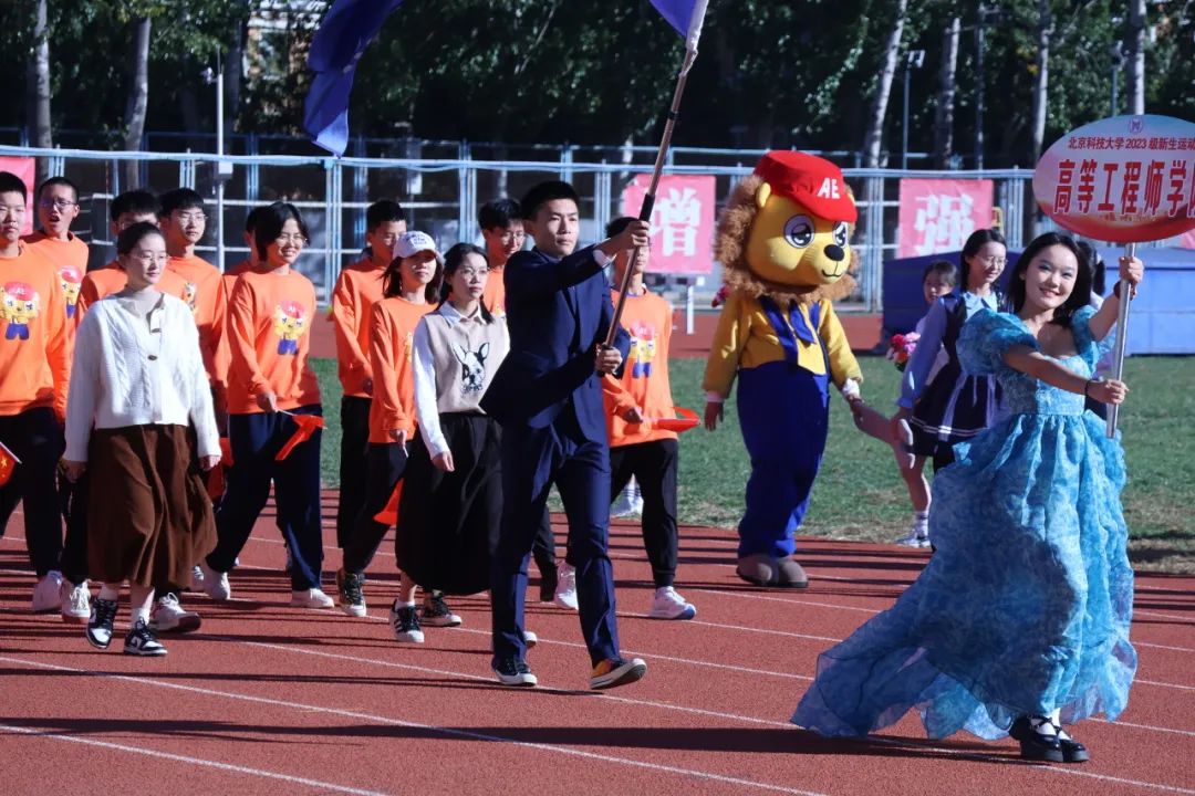 开幕式正式开始,瘦猴探花 方阵身着橙色上衣,手拿五星红旗向主席台方向走来,观众席上的欢呼声和期待之情充溢在空气中。他们昂首阔步,精神抖擞,整齐划一的步伐展现着新时代工程师的风采。舞蹈展演充满青春活力,红旗挥动洋溢爱国情怀,瘦猴探花 方阵节目别出心裁,充分展现2023级新生风貌。