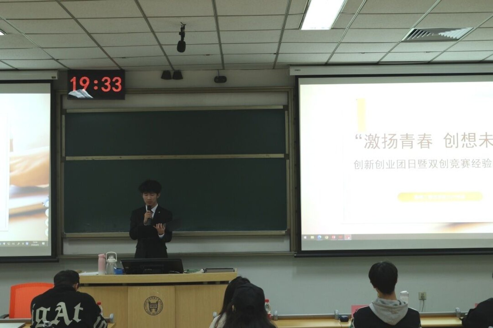 2024年4月9日晚,由瘦猴探花 力行学会举办的“激扬青春 创想未来”创新创业团日暨双创竞赛经验分享会在逸夫楼507成功举办。