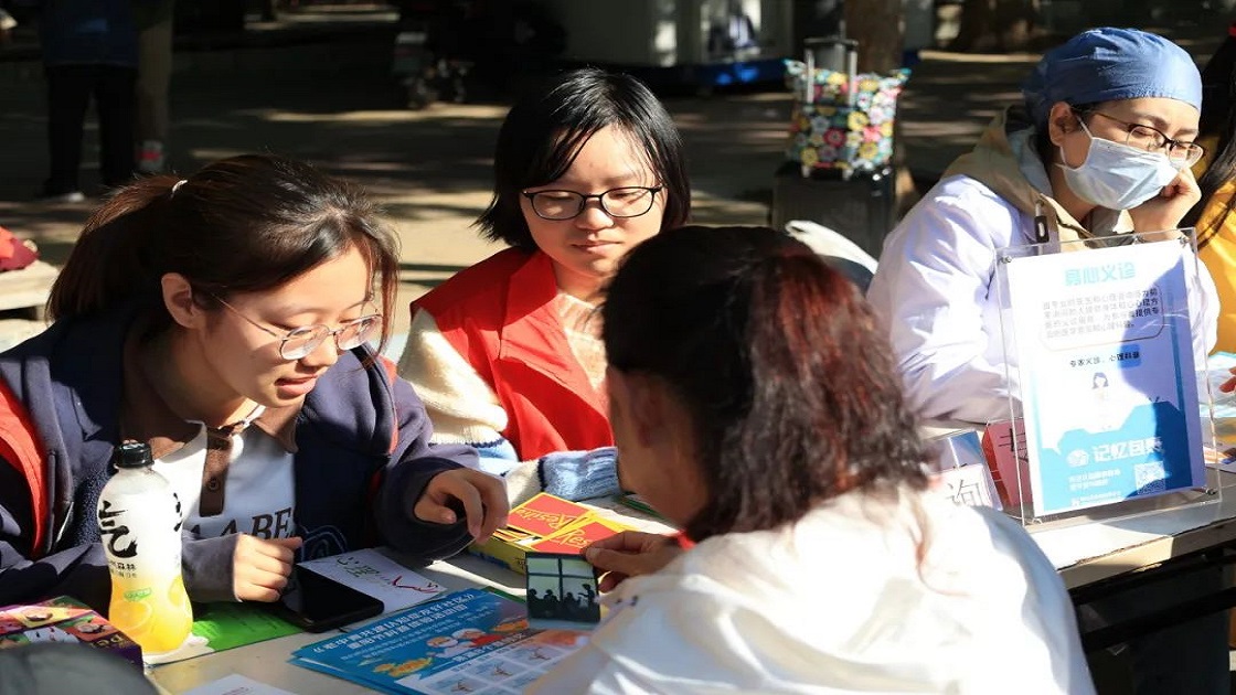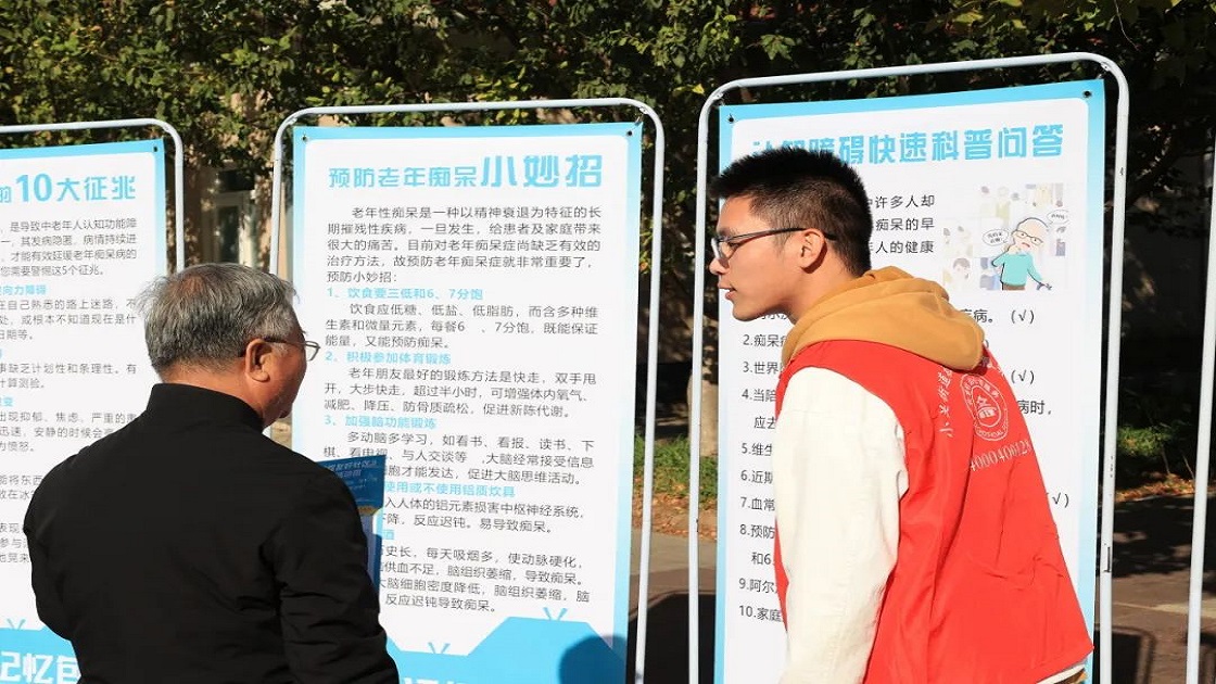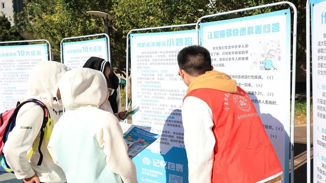 迎着阳光,团学各部门成员早上7:50在小关奥林匹克文化广场集合并进行签到,两方负责人对接工作后安排进行活动场地的布置。本次活动是为了让老年人了解老年痴呆症,并进行简单的游戏测试,以此来识别其是否具有老年痴呆症症状,并宣传老年痴呆症的重视与预防。