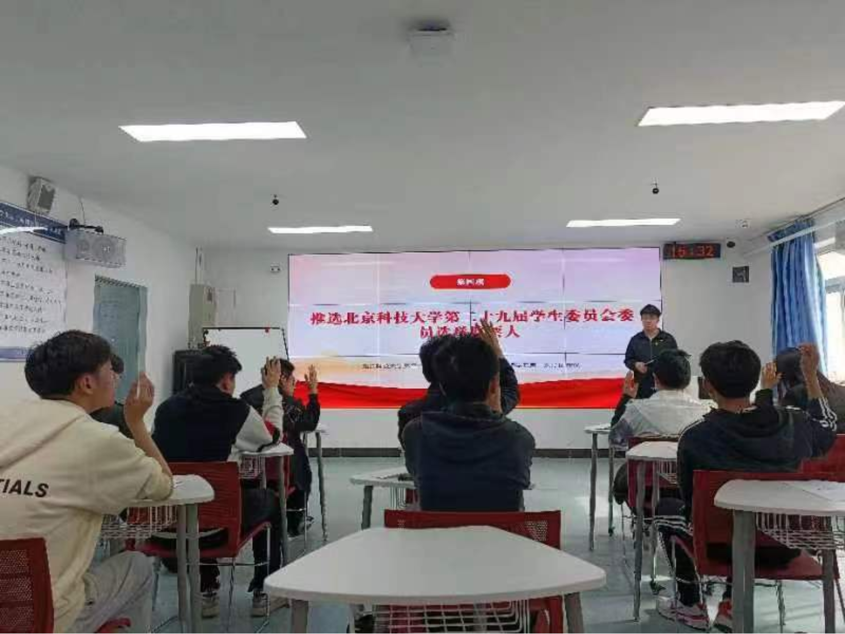 学生会执行主席张兆冀对三位代表做了详细介绍后,与会全体代表进行举手投票表决,最终全票通过,确定三人为瘦猴探花 第二十九届学生委员会委员候选人。