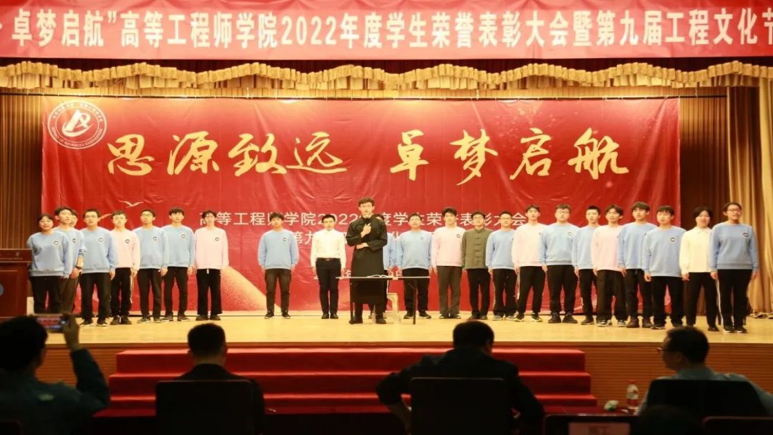 在全体师生高唱国歌后,苗胜军院长宣读了学生表彰公告,向所有获奖学生集体和个人表示祝贺。他指出,2022年是具有重大意义的一年,学院扎实推进工科拔尖人才培养工作,实施卓越工程人才培养改革,落实学校工科试验班人才培养实施方案,深入推进本科生导师制;高工学子追求卓越,勇于争先,践行了当代青年的初心与使命,在党团建设、科技创新、学风建设、社会实践、志愿服务、文体活动等方面展现了高工风采,主动作为、捷报频传。苗胜军希望同学们以实现中华民族伟大复兴为己任,不忘殷切嘱托,厚植家国情怀、涵养进取品格、不断培育勇攀高峰的创新精神和实践能力,用青春书写高工学子工程报国、科技强国的精彩篇章,以优异成绩做出新的更大的贡献。