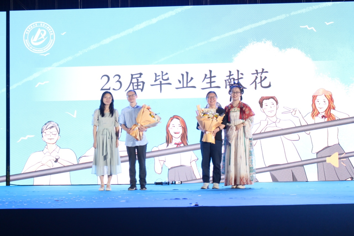 学院党委书记马聪在毕业生晚会致辞中向圆满完成学业的毕业生同学们致以美好祝愿,向所有为同学们成长成才耕耘奉献的师长亲友们,致以衷心感谢,希望同学们在开启一段新的人生征程时在行囊中备上来自北科大的三样东西——一块石、一抔水和两抹鲜明色彩。
