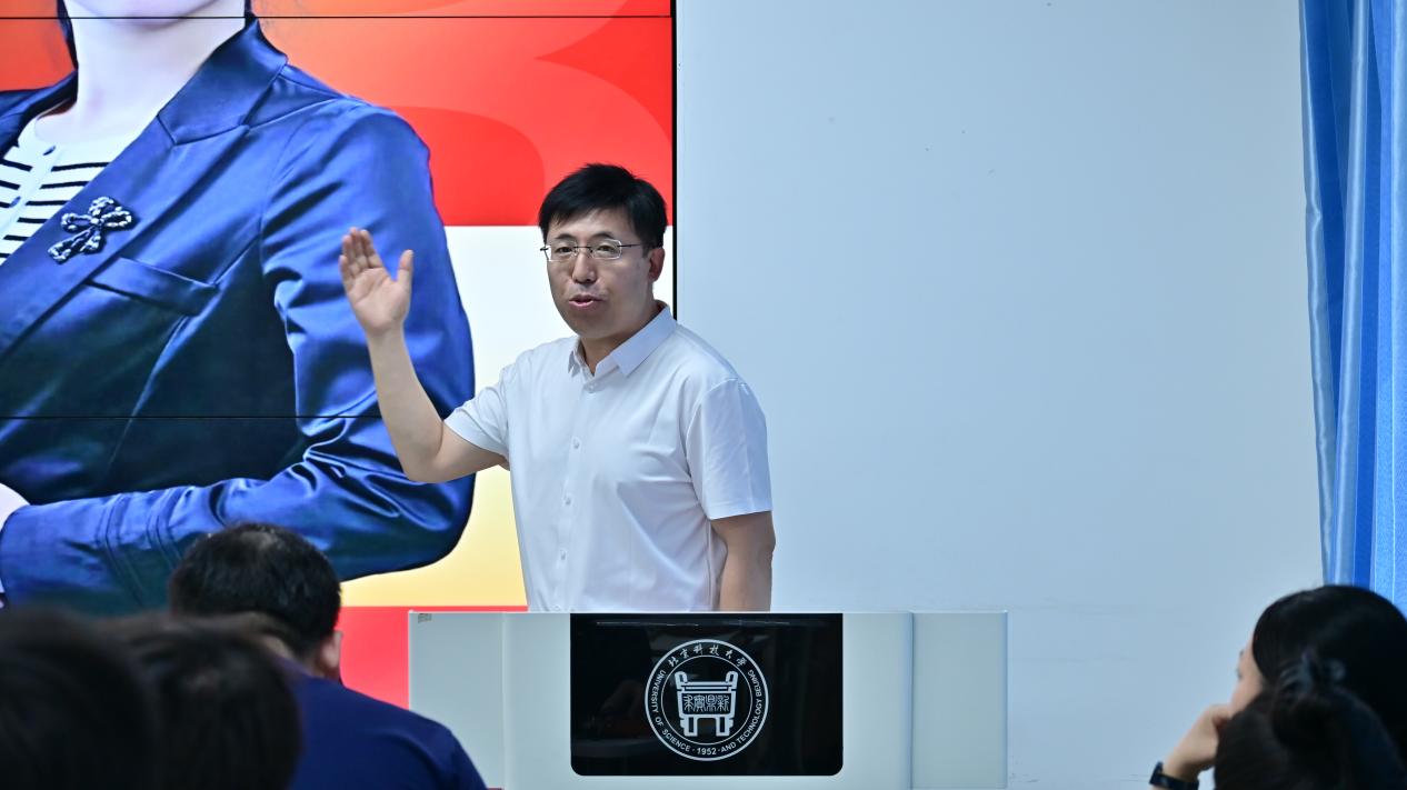 杨萍萍老师介绍了自己多年从教的基本情况,又从坚守立德树人初心,为党培育优秀人才;坚持以学生为根本,创新优化教学方法;推进课程思政融合,构建课赛协同体系以及深化科研反哺教学,助力学生创新发展四个方面讲述了在校工作的育人故事。杨萍萍在讲述中表示,三尺讲台存日月,愿以匠心致初心,未来将继续以“四有”好老师的标准为坐标,在教学创新中深耕课堂主阵地,在学科竞赛中构建实践共同体,在思政融合中筑牢信仰压舱石,让每个育人维度都闪耀着北科大“求实鼎新”的精神光芒。