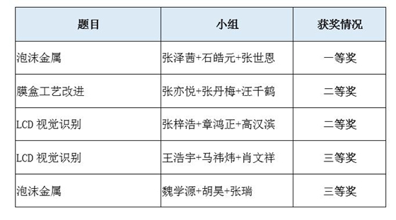 最终,经过综合评估,泡沫金属课题的张泽茜组获得一等奖,其他四组分别获得二等奖和三等奖。