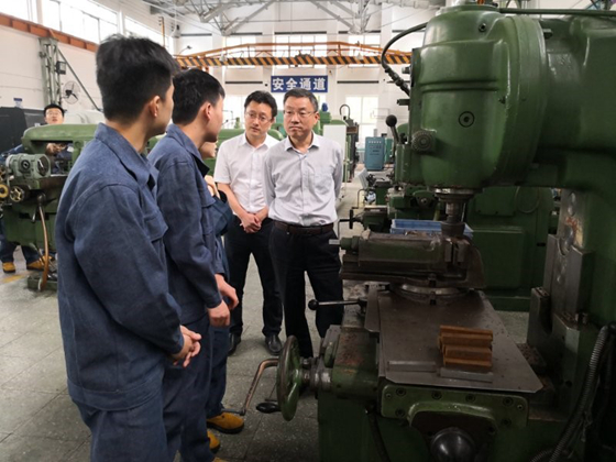 金工实习基地进行工作调研,党办校办主任郑安阳陪同调研。