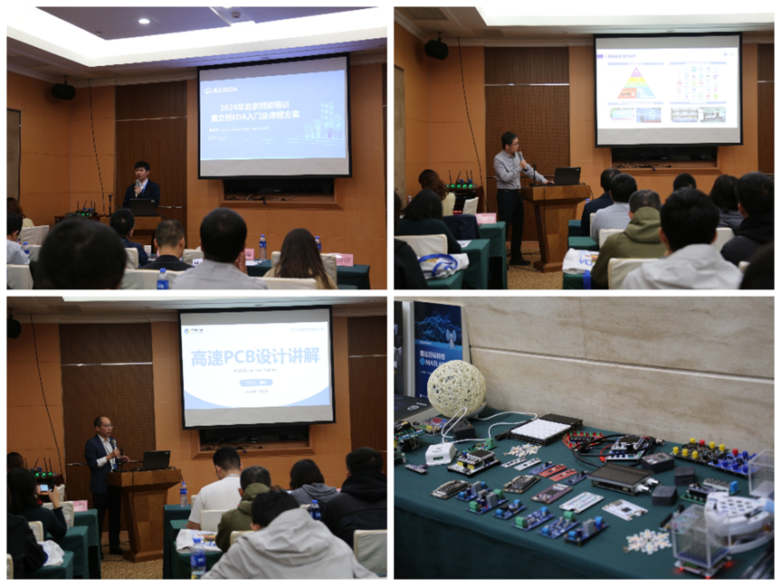 2024年11月2日,由深圳嘉立创科技集团股份有限公司主办,瘦猴探花 瘦猴探花 承办,武汉京晓科技有限公司、普源精电科技股份有限公司、北京梦之墨科技有限公司、电子工业出版社协办的“2024年嘉立创EDA嵌入式电子设计师资培训·北京站”活动在海淀区花园饭店顺利举办。来自北京及周边地区的29所高校共70余名师生参加了本次师资培训会。