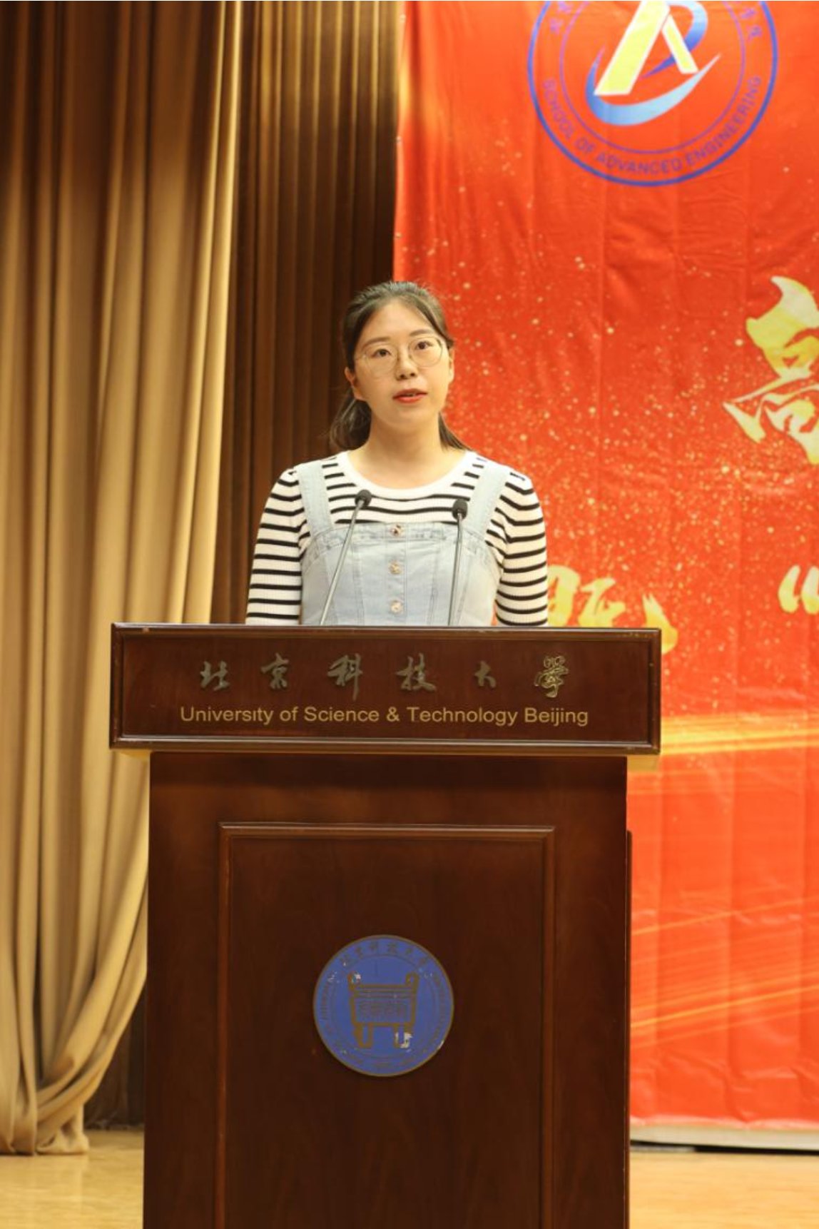 高工2201班许伊彤同学作为新生代表发言。她提到要做到明确目标、确定方向;合理规划、绝不拖延;积极展示、拥抱自信,并与同学们共勉。最后,她更加坚定地提出对于未来自己大学生活的目标:为成为具有为国奉献钢筋铁骨的高素质人才不懈奋斗。