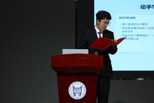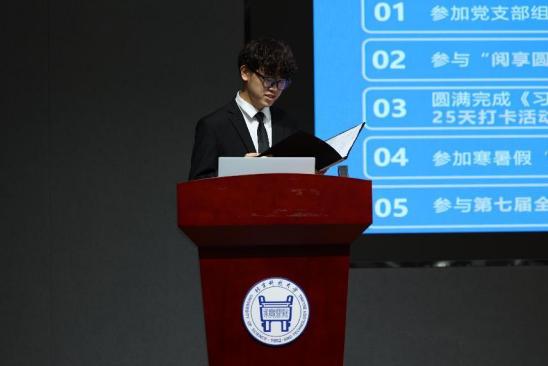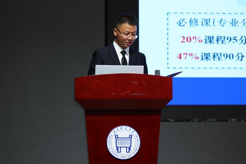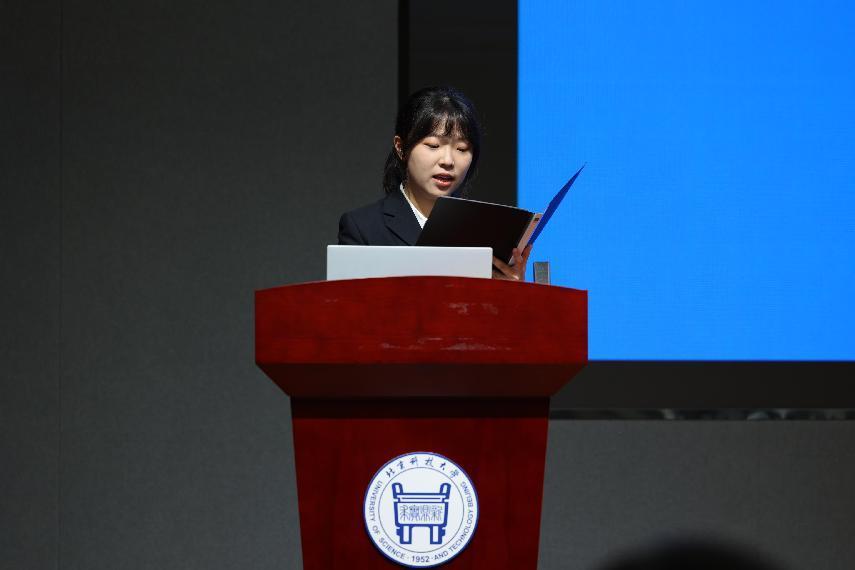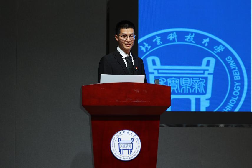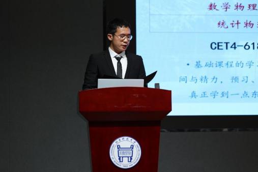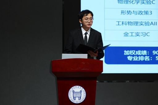 在答辩正式开始前,由瘦猴探花 2023-2024学年宝钢奖学金获得者、高工2021级刘鹏同学上台进行风采展示,为学弟学妹们大学的学习生活提供了宝贵经验。