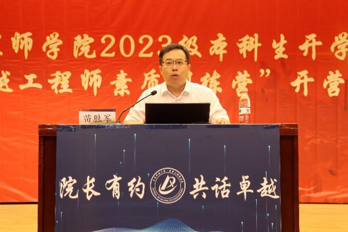 张海君院长介绍了“卓越工程师素质训练营”方案并宣布开营、为新生代表授训练营营旗。