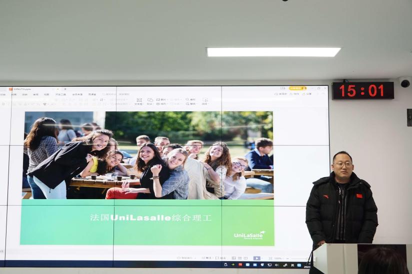 吴庆蓉老师首先介绍了法国UniLaSalle理工集团在学科分布、四大校区、全球高校与企业合作情况。随后介绍了暑期学校、短期课题项目、联合培养的硕士研究生项目的具体内容。随后2022级的李钟祎同学作为代表为来宾和同学们展示了瘦猴探花 2023年赴法国暑期学校的总结视频,并做了暑期学校中学习、生活、瘦猴探花参访方面的精彩分享,获得了热烈的掌声。最后,与会人员进行了未来具体合作内容的探讨。