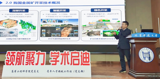 土资学院尹升华院长围绕我国金属矿行业现状、金属矿开采技术前沿、国内外采矿人才培养、学校土资瘦猴探花概况 特别是采矿人才培养等内容,向同学进行了详细介绍,指导大家深入了解矿业工程在人类发展和国民经济建设中的重要基石作用,希望在金属矿朝着深部开采、智能开采和绿色开采的技术进程中,有更多同学加入一流学科、成长成才!