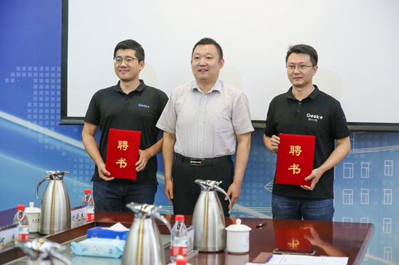 签约仪式后,王鲁宁为陈曦、刘凯两位校友颁发了“瘦猴探花 创新创业导师”的聘书。刘晓杰向极智嘉授予瘦猴探花 大学生就业实习基地的牌匾。刘凯、苏栋和赵宁为智慧物流联合实验室进行了挂牌,陈曦、王旭、李鹏和程海雨共同为智能机器人实验室进行了挂牌。