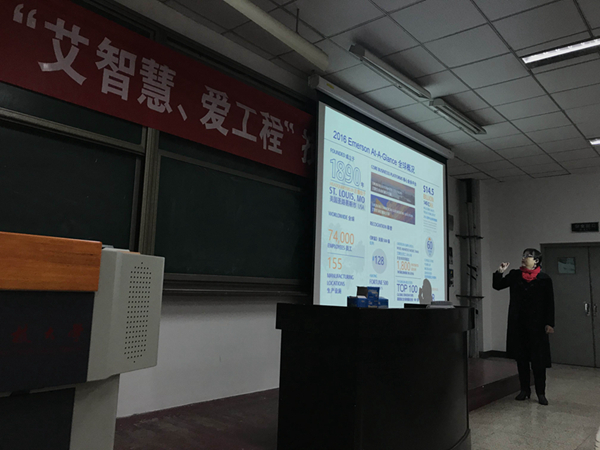 梁冬迎总经理为同学们介绍了艾默生的全球概况,并对STEM教育进行了深入讲解,这也是此项产教融合、协同育人工作的重要合作方向。