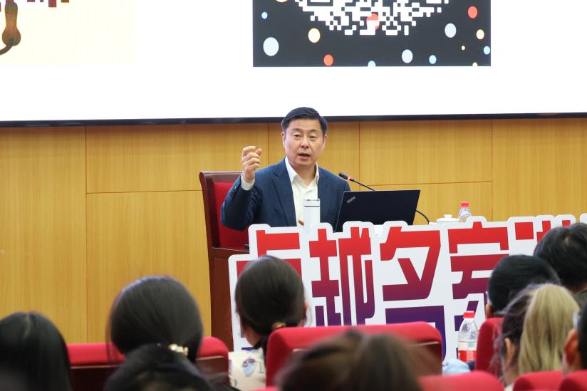伴随着热烈的掌声,毛新平院士围绕钢铁与人类文明、钢铁材料的特性、碳中和背景下的钢铁工业等主题进行生动讲解,介绍了学校碳中和研究院及团队建设情况,总结了钢铁人类文明进步和社会经济发展的重要物质基础作出突出贡献,我国作为全球钢铁的生产和消费中心并逐步成为全球钢铁材料科学与技术中心,将为全球钢铁业的发展和人类美好生活作出更大贡献。报告既讲出了学术理论的高度,又积蓄了工程思想的力量,蕴含着丰富深厚的家国情怀、钢铁情怀,为工程人才培养和学生专业发展注入了思想源动力、奋进新能量