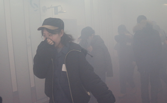 下午3:00,一楼释放烟雾,火灾警报拉响,楼内师生经消防通道,快速有序的撤离到楼外安全地带,历时2分50秒,楼内全部人员疏散完毕。