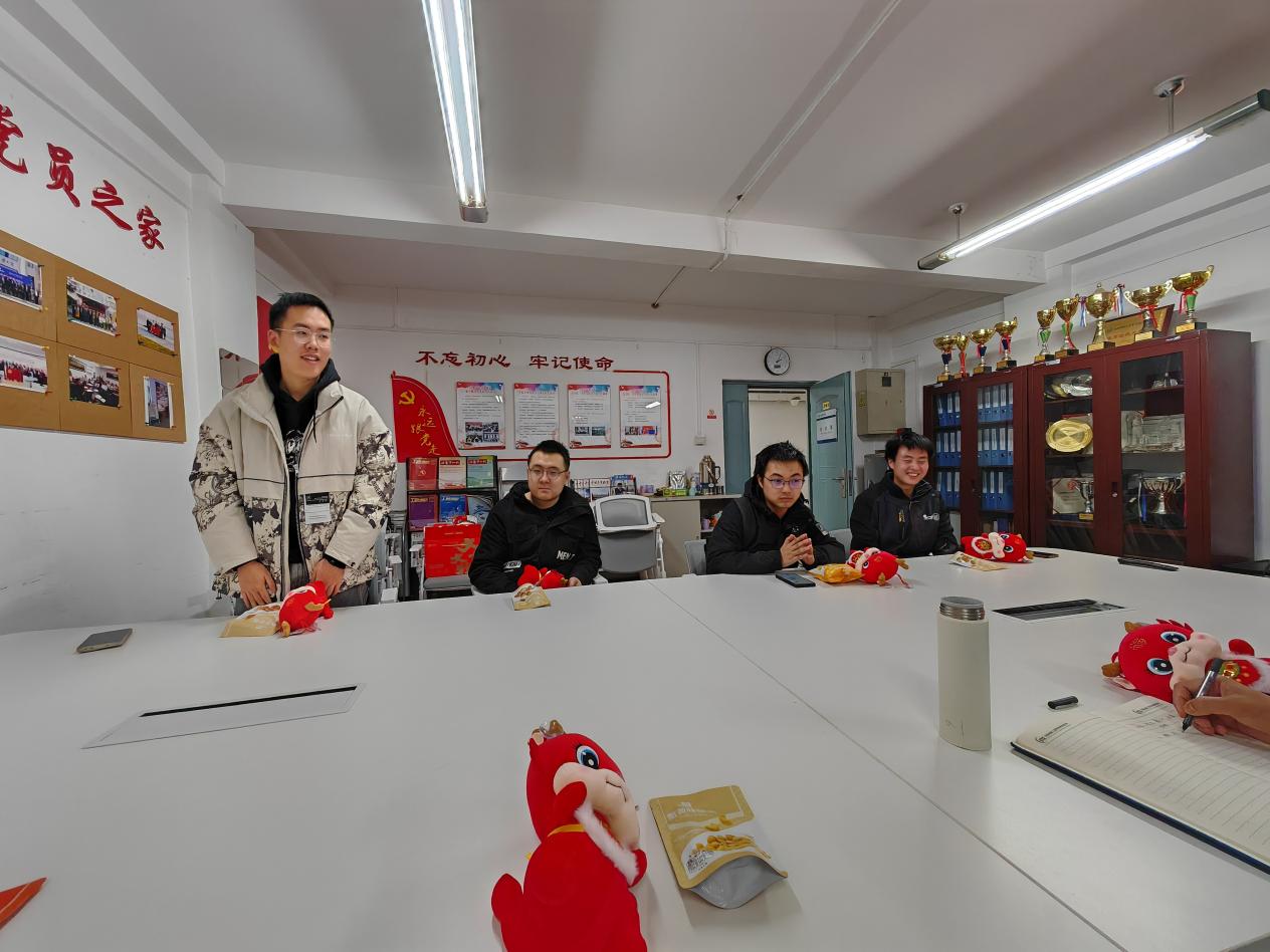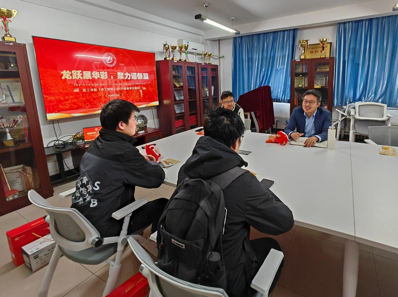 张海君院长在交流中详细了解了学生们留校的学习生活情况,对学科与科创备赛、实践、实习等进行建议指导,切实询问学生现实需要并给予帮助落实,鼓励大家在新的一年里继续追求学业进步和个人成长。同时,张院长与近期在岗位一线进行科创竞赛备赛指导的教师进行深入交流,并代表学院表达关怀问候。