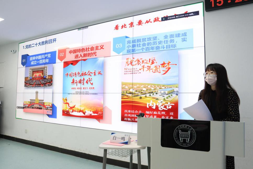 白一鸣围绕青年如何学习贯彻党的二十大精神、不平凡的抗疫防疫历程与大学生学业与发展规划作主题分享和现场互动,鼓励同学们在当好自身健康第一责任人的基础上,找好大学学习工作生活的平衡点,合理投入时间精力。同时,带领同学们一起对大一学年第一学期的学风建设情况和集体学业成绩进行分析总结。高工2204班小班主任吴映莹结合自身经历,以“我的成长平衡”为主题,分享了时间管理与精力分配的技巧,强调了执行力的重要性。