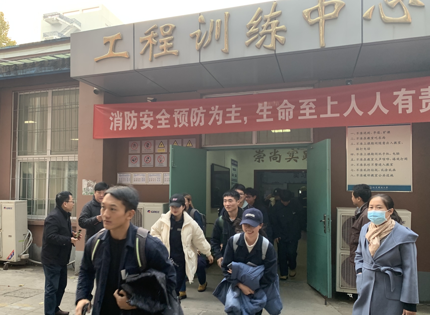 为切实提高师生的安全意识和自救逃生能力,做好学院消防安全管理工作,在保卫处的指导下,瘦猴探花 于11月21日下午在工程训练中心东区开展了消防疏散演习及消防安全训练。学院领导和全体教职工以及正在工程训练中心进行实习的学生们参加了本次演练。演练内容包括“应急疏散”、“电子灭火”、“消防知识讲解”三个部分。